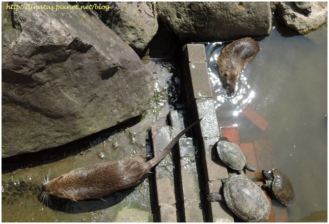 水獺可以跟烏龜放在一起養椰!好省空間喔!!